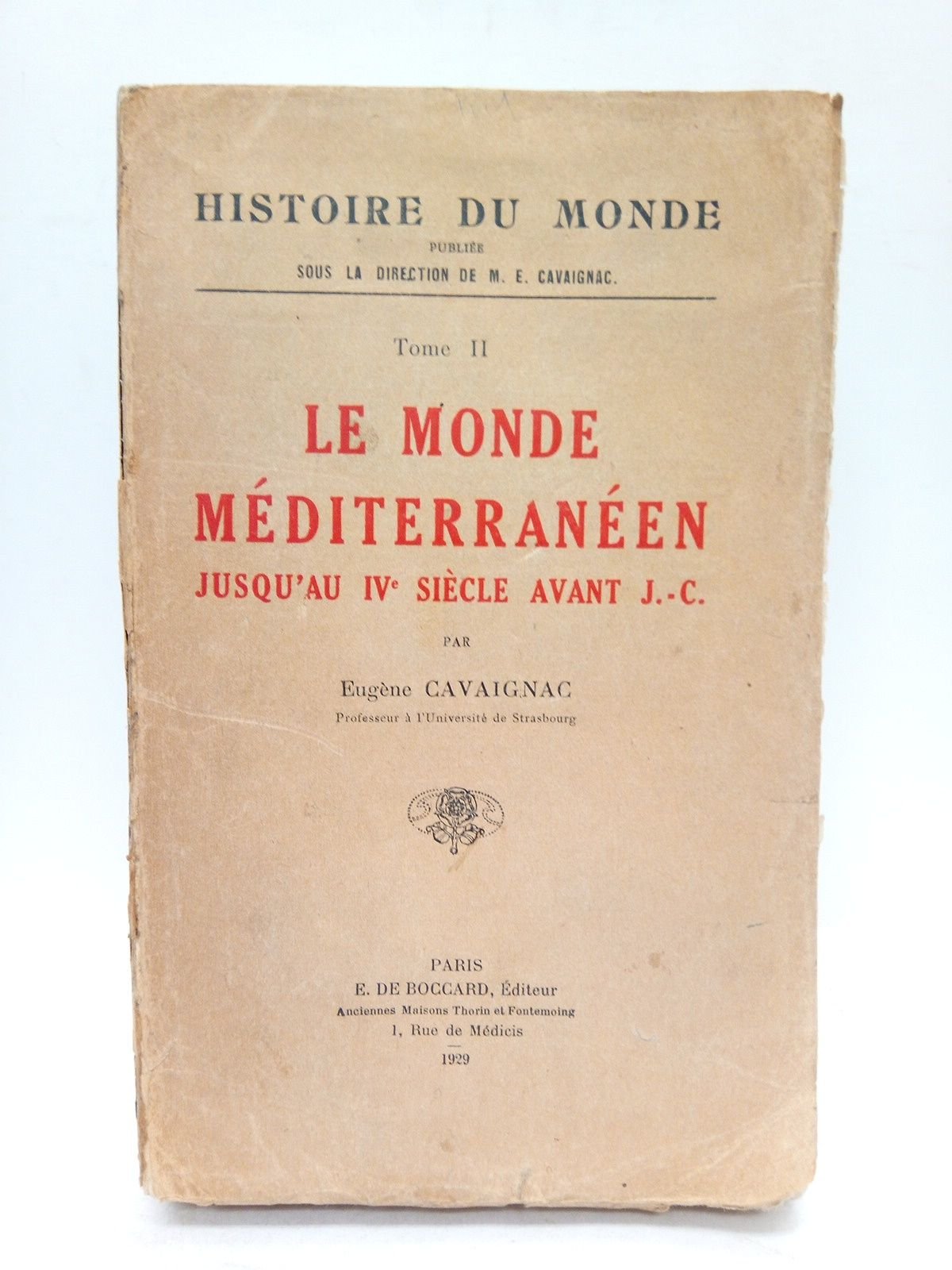 Paris: E. de Boccard, Ed., 1929.- VIII,708 p.: con 2 mapas plegados al final; Parcialmente intonso; Rústiva Ed.- (Histoire du Monde. Publiée sous la Directión de M. E. Cavaignac. Tome 2).* Las cubiertas fatigadas y con pequeñas faltas. Por lo demás en buen estado. GRECIA Y ROMA, FILOLOGÍA CLASICA