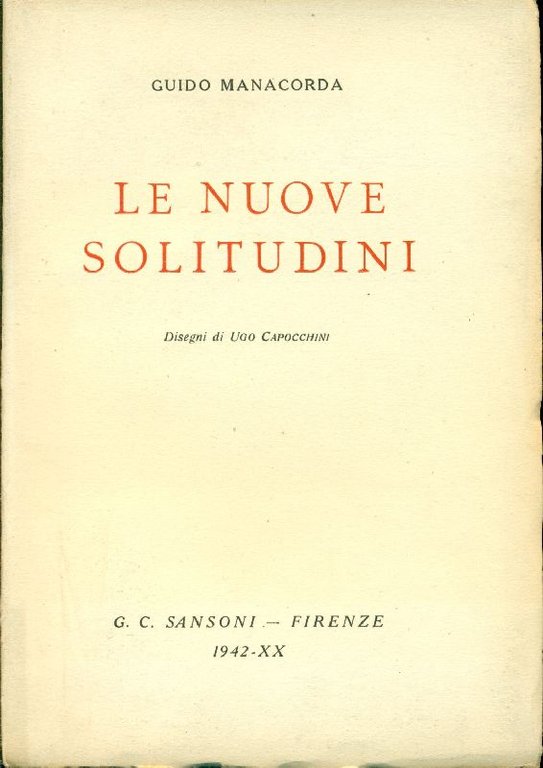 Le nuove solitudini | Libri antichi e moderni | MANACORDA, Guido (Acqui 1879 - Firenze 1965),