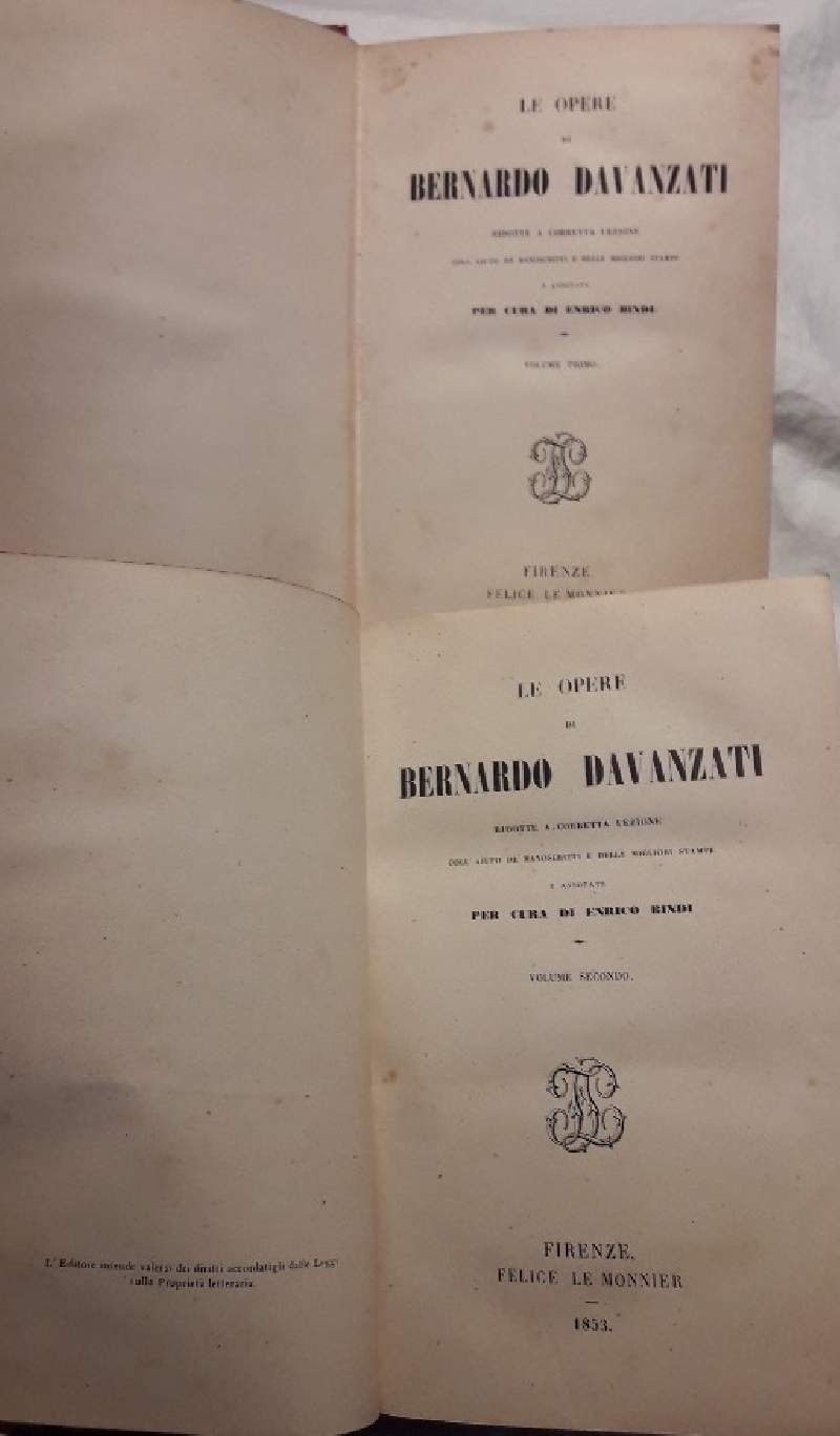 LE OPERE DI BERNARDO DAVANZATI- 2 VOLL.( 1853) | Libri antichi e moderni | Davanzati Bernardo