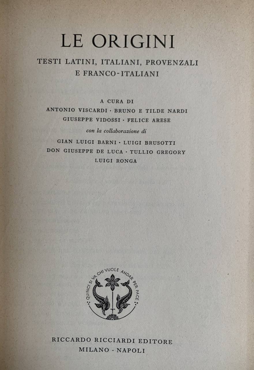 Le origini. Testi latini, italiani, provenzali e franco-italiani | Libri antichi e moderni | AA. VV., ,AA. VV.