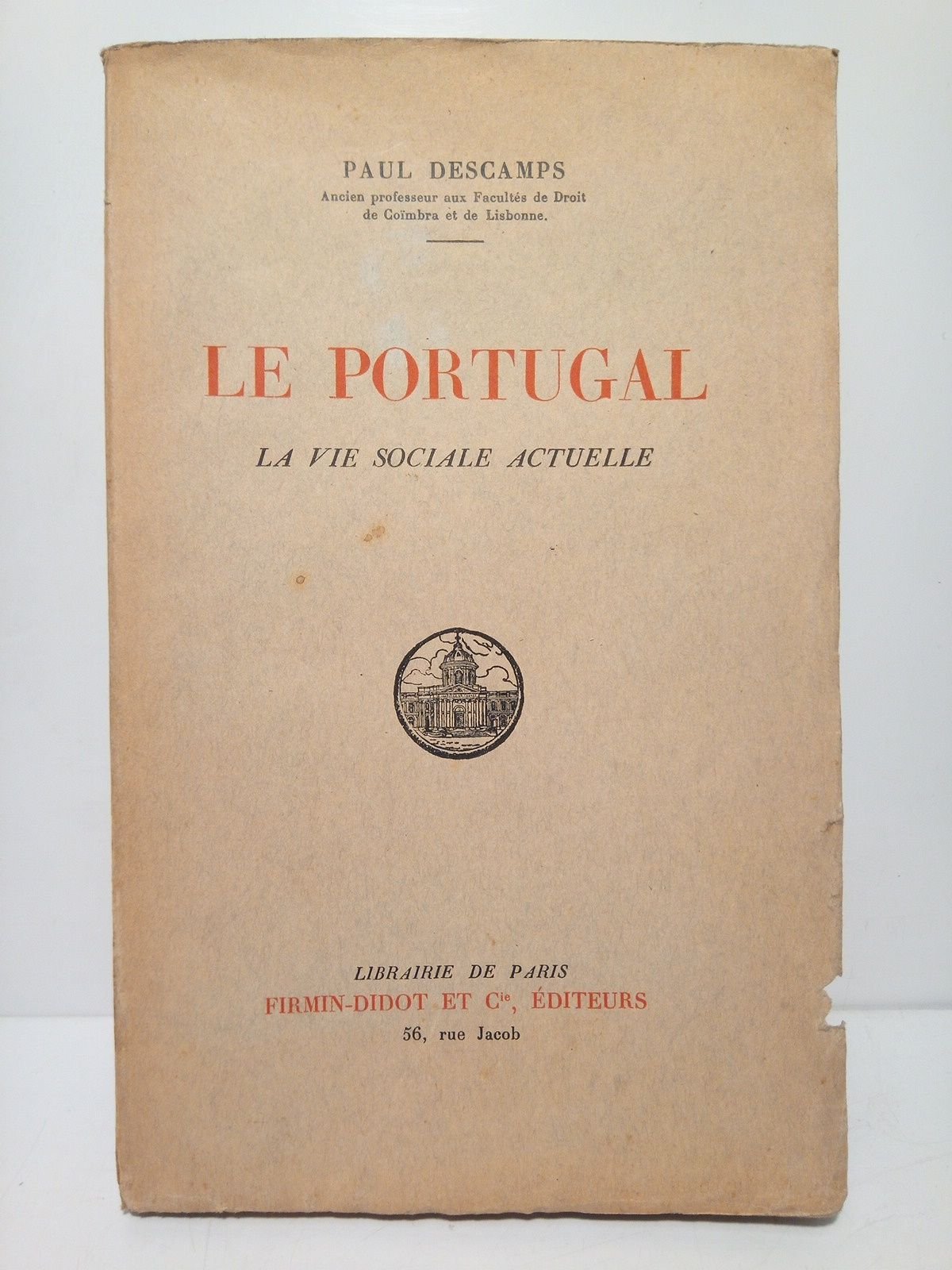 Paris: Firmin-Didot et Cie., 1935.- XVIII,505 p.: Láminas fotográficas en negro y al final un mapa de Portugal; 4º (22,7 x 14,3 cm); Intonso, conservando sus barbas; Texto en francés; Rústica Ed.* Tiene una mínima falta de papel a modo de señal o mueca en el margen externo de las primeras 9 hojas, incluso cubierta. Por lo demás en muy buen estado. PORTUGAL