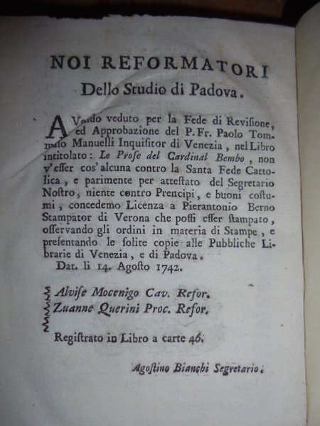 Le Prose di Messer PIETRO BEMBO Cardinale nelle quali si ragiona della volgar lingua | Libri antichi e moderni | Pietro Bembo