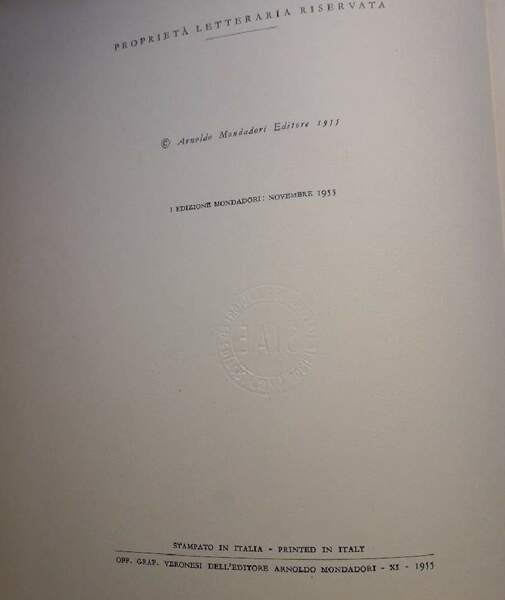 In 4', 30x23, tela ed. con tit. in oro al dorso, ill. apll. al piatto,sovrac. in acetato, pp. 171, ill. in n. f.t.; prima edizione, nuova edizione riveduta con 14 litografie originali di M. Vellani Marchi. Ingiallimento dell'acetato, con piccolo strappo al margine inf. nella parte post., bruniture ai margini delle carte, fioriture al taglio sup., complessivamente in buono stato. ***Due to bureaucratic reasons, books dated over 70 years old cannot be immediately exported, please contact us before placing the order.***
