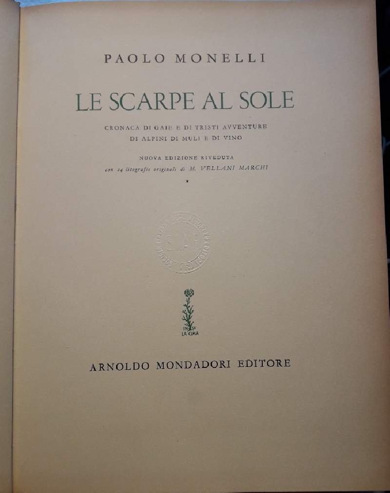LE SCARPE AL SOLE-CRONACHE DI GAIE E DI TRISTI AVVENTURE DI ALPINI DI MULI E DI VINO( 1955) | Libri antichi e moderni | Monelli Paolo