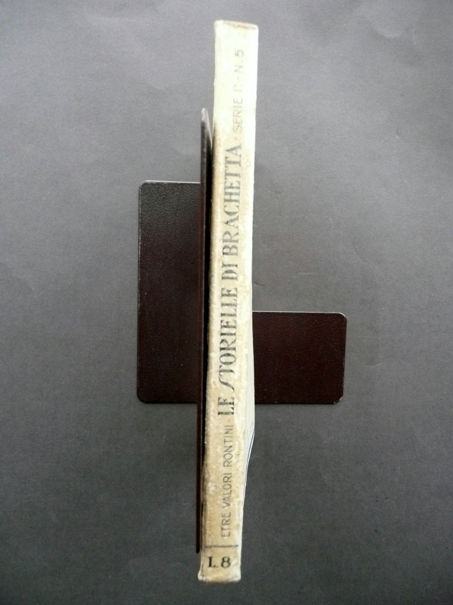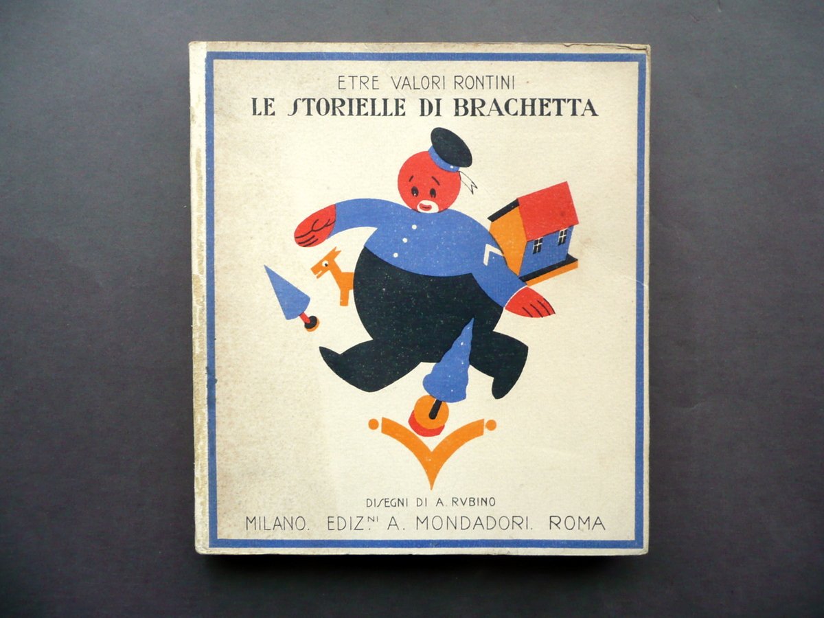 Etre Valori Rontini, Le Storielle di Brachetta Per i piccini piccini Disegni di A. Rubino Mondadori (collana Bibliotechina della Lampada"), Milano - Roma 1923, cm 18x16,5, pp. 138 con qualche ill. in b/n di A. Rubino a piena pagina (vedi foto); brossura ed. con bella ill. a colori alla brossura ant. Condizioni di conservazione Esemplare ben conservato con tracce d'uso e qualche minima brunitura, brossure con alcuni piccoli lievi aloni e accenni di sporco; brossura post. con poche leggerissime tracce di pieghe e una minima pieghetta all'angolo sup.; dorso oggetto di vecchio restauro per mezzo d'incollatura, con alcune piccole abrasioni; esemplare compatto (vedi foto). Interni buoni con leggerissimi accenni d'ingiallimento; alcune pagine con un paio di lievi tracce di pieghe alla parte sup.; margine inf. delle pp. 131-132 con un piccolo strappetto (vedi foto). Raro testo per l'infanzia, con illustrazioni di A. Rubino (vedi foto). Ben conservato. SETT117.L11162 N "