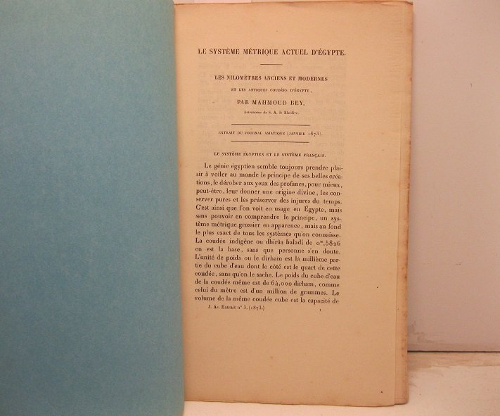 Le systeme metrique actuel d'Egypte. Les nilometres anciens et modernes et les antiques coude'es d'Egypte Extrait du Journal Asiatique (janvier 1873) | Libri antichi e moderni | Bey Mahmoud