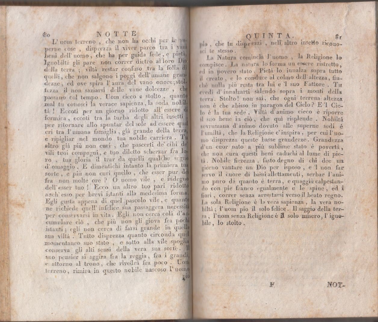 Copertina coeva in mezza pelle con titoli e fregi dorati entro tasselli al dorso. Dimensioni: 12 x 18 cm. Stato di conservazione: molto buono (fioriture, piccole abrasioni ai piatti, antica firma di appartenenza).
