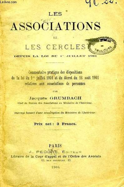 LES ASSOCIATIONS ET LES CERCLES DEPUIS LA LOI DU 1er JUILLET 1901 | Libri antichi e moderni | Grumbach Jacques