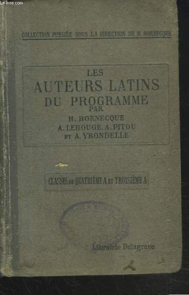 LES AUTEURS LATINS DU PROGRAMME (SAUF L'ENEIDE). CLASSE DE 4e A et 3e A. | Libri antichi e moderni | H. Bornecque, A. Lerouge, A. Pitou, A. Yrondelle
