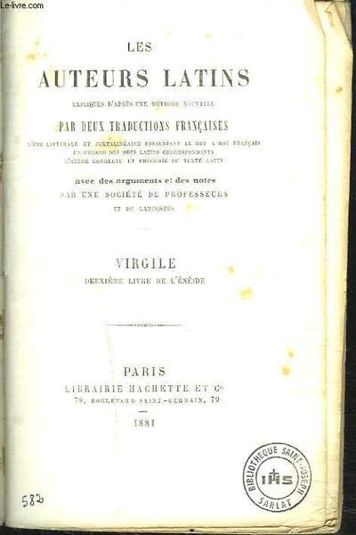 LES AUTEURS LATINS, EXPLIQUES D'APRES UNE METHODE NOUVELLE, PAR DEUX TRADUCTIONS FRANCAISES, VIRGILE, DEUXIEME LIVRE DE L'ENEIDE. | Libri antichi e moderni | Virgile