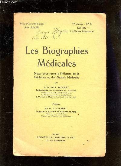 LES BIOGRAPHIES MEDICALES - NOTES POUR SERVIR A L'HISTOIRE DE LA MEDECINE ET DES GRANDS MEDECINS / REVUE MENSUELLE - 4e ANNEE - N�6 - JUIN 1930 / GEROGES HAYEM.