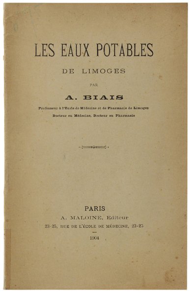 LES EAUX POTABLES DE LIMOGES. | Libri antichi e moderni | Biais A.