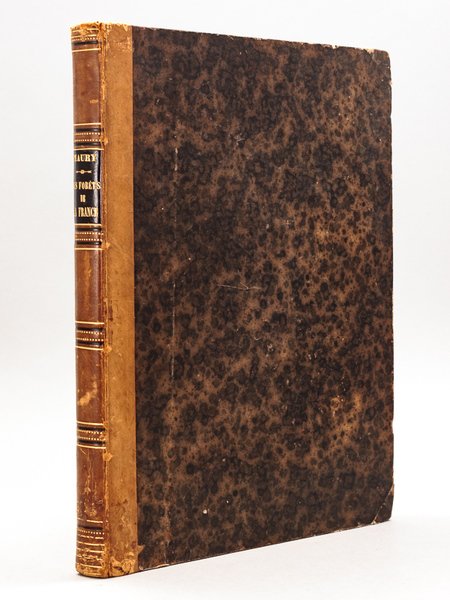 1 vol. in-4 reliure de l'époque demi-veau caramel, dos à 4 faux-nerfs dorés, Extrait du Tome IV, 2e Série, 1re Partie des Mémoires présentés par divers savants à l'Académie des Inscriptions et Belles-Lettres, Imprimerie Impériale, 1856, 2 ff., 270 pp. avec 5 cartes en 4 planches hors texte Rare exemplaire de l'édition originale de 1856. L'auteur y évoque l'histoire des forêts françaises et la législation qui les a régies jusqu'à Louis XIV. L'ouvrage est illustré de 5 cartes historiques dressées par Malte-Brun et comprenant : 1e : les forêts des environs de Paris ; 2e : la forêt d'Orbestier, près des Sables d'Olonne ; 3e : la forêt de Montsalvy, au sud d'Aurillac ; 4e : la forêt de Saulve-Majour (La Sauve-Majeure) près de Bordeaux ; et 5e : la forêt de Saintes. Dans son introduction, le polygraphe érudit Alfred Maury évoque les mythologies et l'anthropologie relatives à la forêt. Bon état (dos un peu frotté avec petits accrocs, qq. rouss., qq. passages soulignés au crayon)
