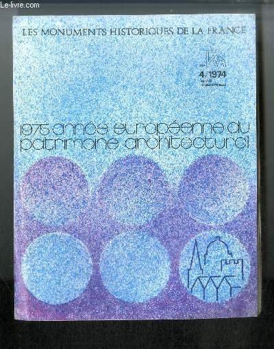 LES MONUMENTS HISTORIQUES DE LA FRANCE N° 4 - La loi de 1962 et son application par A. Vignier, Défense et illustration du pastiche par J. Houlet, Restauration immobilière et changement social par Cl. Soucy, Le métier d'architecte en chef par Y. Boiret