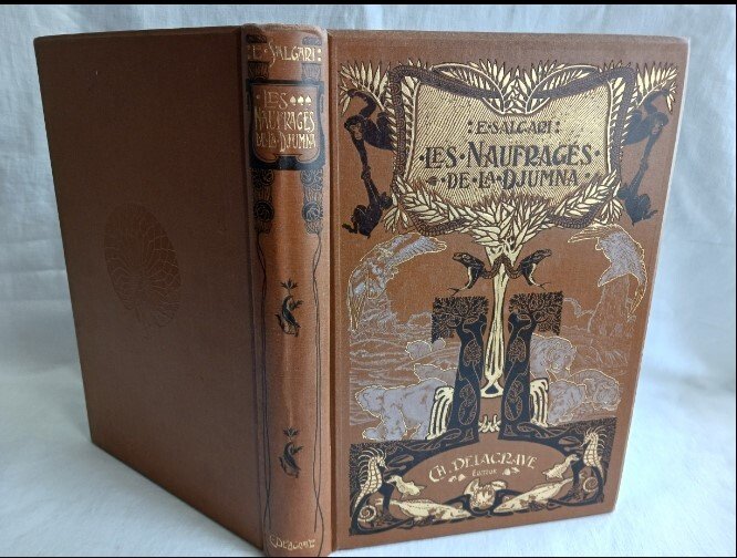 Edition Librairie Ch. Delagrave,Formato: In-4 (30,5 x 21 cm), rilegato, 297 pagine Rilegatura in cartoncino color avana decorata con una deliziosa raffigurazione di animali sulla prima di copertina, bordo dorato illustrato con incisioni fuori testo di E. TRIGOULET.
