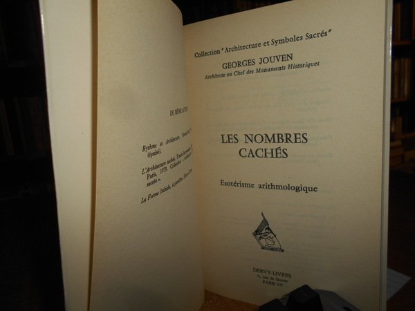 GEORGES JOUVEN. Paris, Dervy-Livres, 1982. Les nombres cachés: Esotérisme arithmologique. In-8°, cartoncino edit. con risvolti. 258, (2) pp. con numerose ill. n.t. e alcune tavole f.t. Come nuovo. Uff. stanzetta mob. a sinistra centro sotto.