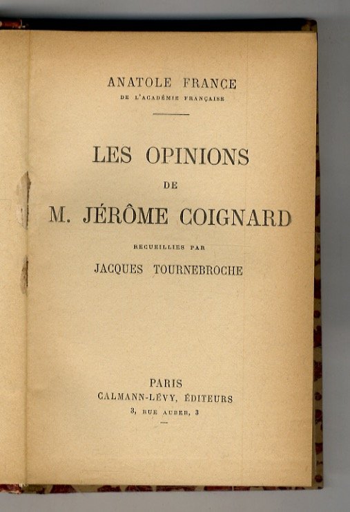 Les Opinions de M. Jérôme Coignard. Recueillies par Jacques Tournebroche.