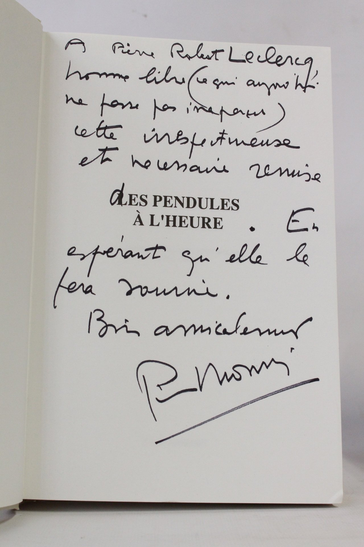 Le Flambeau | Paris 1992 | 15.50 x 24.50 cm | reliure de l'éditeur | [ENGLISH DESCRIPTION ON DEMAND] | Première édition sous ce titre et pour laquelle il n'est pas fait mention de grands papiers. Reliure de l'éditeur en plein cartonnage. Envoi autographe signé à pleine page de Pierre Monnier à Pierre-Robert Leclercq : . homme libre (ce qui aujourd'hui ne passe pas inaperçu) cette irrespectueuse et nécessaire remise des pendules à l'heure. Agréable exemplaire.