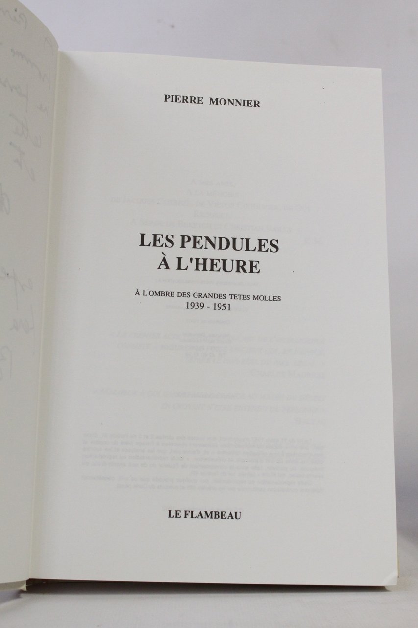 Les pendules à l'heure. A l'ombre des grandes têtes molles 1939-1951 | Libri antichi e moderni | Pierre Monnier