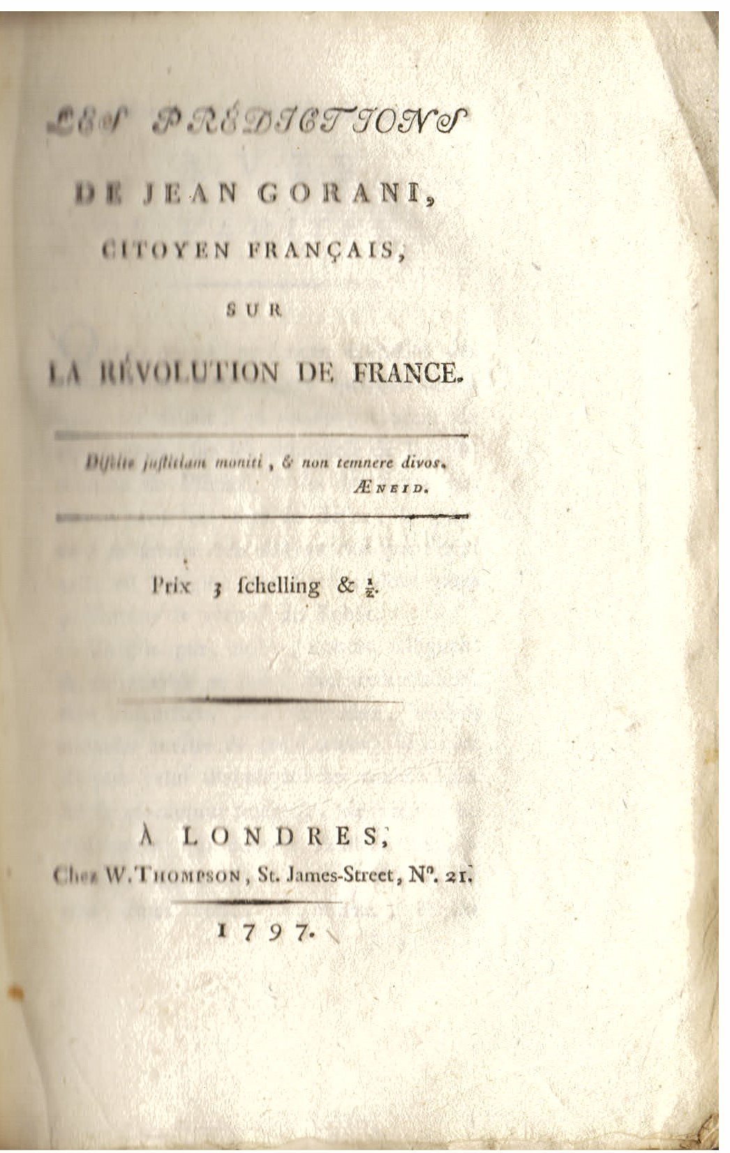 Les Preédictions de Jean [sic] Gorani, Citoyen Français sur la Révolution de France
