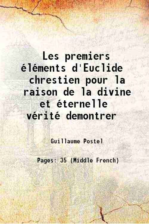 Les premiers ÈlÈments d'Euclide chrestien pour la raison de la divine et Èternelle vÈritÈ demontrer 1579 | Libri antichi e moderni | Guillaume Postel