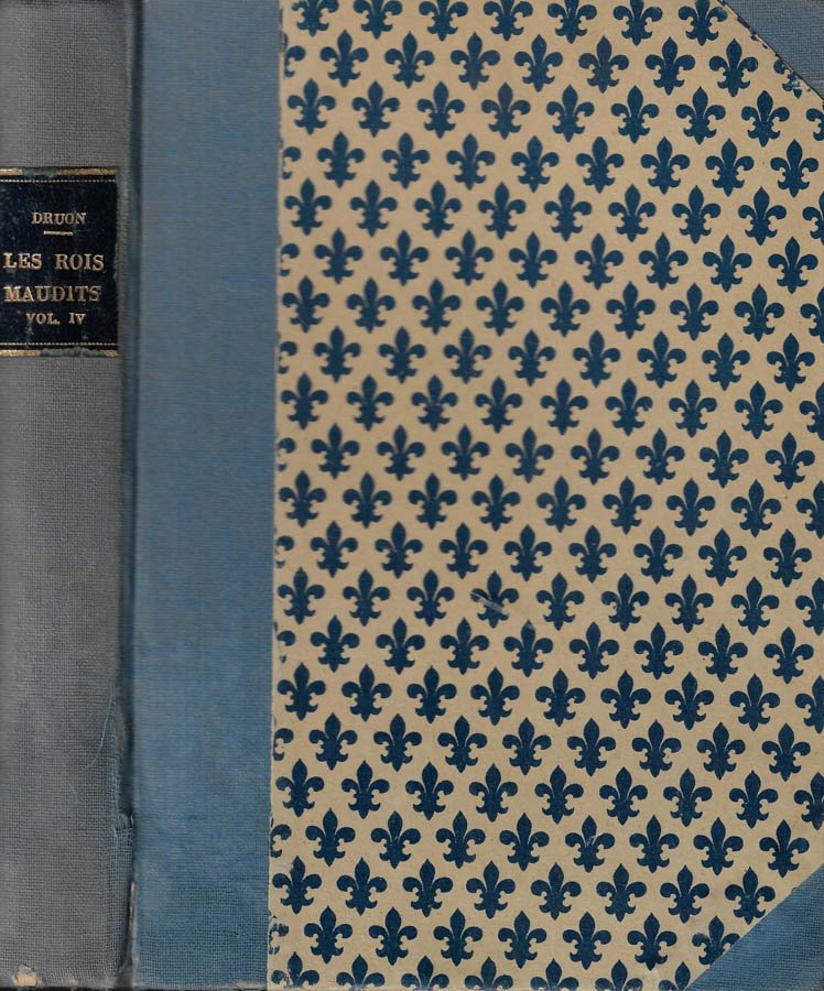 Volume n. IV della serie Les Rois Maudits. Mezza legatura con angoli in tela azzurra e piatti in carta gigliata, scurita dal tempo, con strappetti alla cerniera, piccole abrasioni e bordi stanchi, con titoli in oro solo al dorso all'interno di tassello nero. Tagli e pagine ingialliti; quest'ultime salde, con ampio margine. Data e firma di appartenenza, a penna, ad inizio volume. Numero pagine 329.