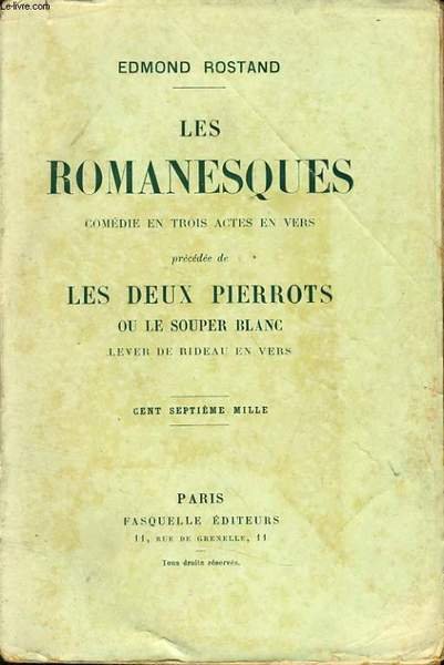LES ROMANESQUES com�die en trois actes en vers pr�c�d� de : Les deux pierrots ou le souper blanc lever de rideau en vers | Libri antichi e moderni | Edmond Rostand