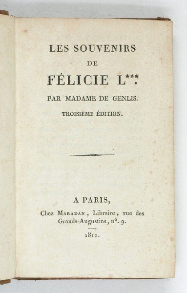 Les Souvenirs de Félicie L***. Troisième édition. | Libri antichi e moderni | Genlis, [Stéphanie Félicité, Comtesse] De.