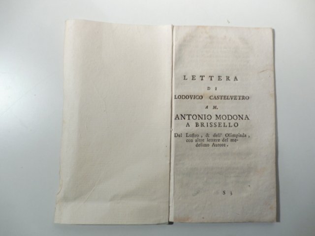 Lettera a M. Antonio Modona a Brissello Del Lustro & dell'Olimpiada con altre lettere del medesimo autore | Libri antichi e moderni | Castelvetro Lodovico