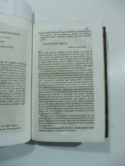 Lettera del Prof. Osann di Berlino sul Cholera morbus asiatico che ha regnato in quella citta' nell'autunno del 1831 diretta a Gaspare Barzellotti. (Stralcio da: Nuovo giornale de' letterati. N. 62. 1832)