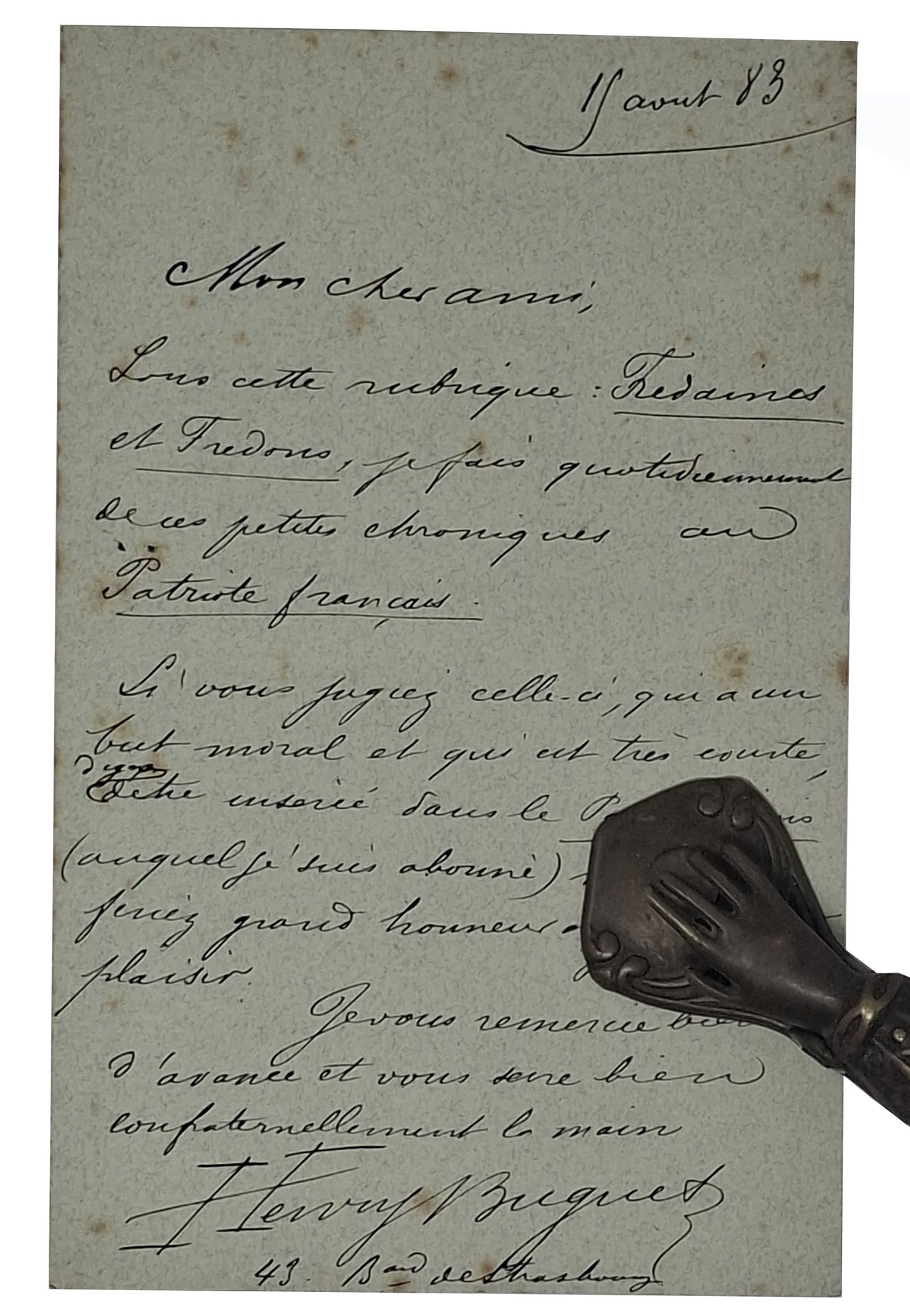 lettera manoscritta con autografo originale di Henry Buguet