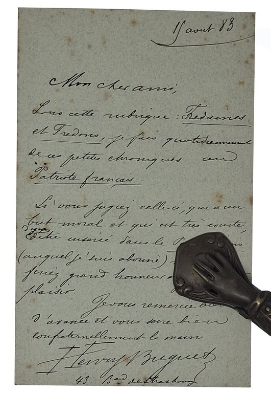 lettera manoscritta con autografo originale di Henry Buguet | Libri antichi e moderni |