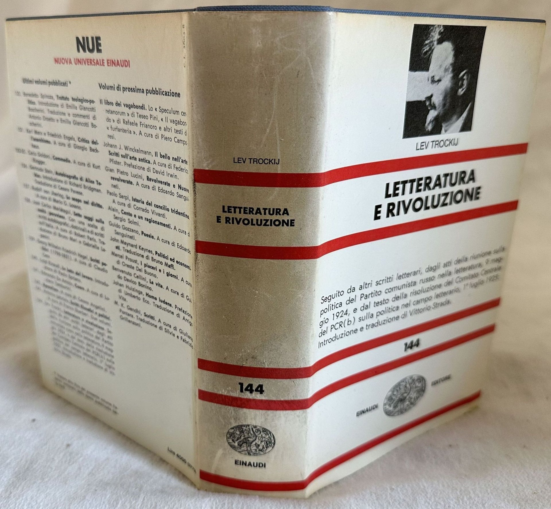 Prima edizione italiana del 1973 dell'opera "Letteratura e rivoluzione" di Lev Trockij (1879-1940). Introduzione e traduzione di Vittorio Strada. All'interno: La letteratura contemporanea; I "compagni di strada" letterari della rivoluzione; Aleksandr Blok; Il futurisamo; La scuola formale di poesia e il marxismo; La politica del partito nell'arte; Arte della Rivoluzione e arte socialista: Alla Vigilia; L'occidente e noi; Appendice (Scritti di Trotskij: Lev Tolstoj, Tolstoj, La letteratura e la politica del partito comunista, In memoria di Sergej Esenin; Il suicidio di Vladimir Majakocskij, Dem'jan Bednyi; Anatolij Casil'evic); sulla politica del partito nella letteratura; Sulla politica del partito nel campo letterario) ecc. In buone condizioni. Copertina in tela editoriale con sovraccoperta in ottime condizioni con lievi usure ai margini e dorso. Alcune macchie. Legatura in buone condizioni. Pagine in ottime condizioni con rare fioriture. In 16. Cm 18,5x12,5. Pp. XXIX+(1)+206+(10). First italia edition ofl 1973 of the work "Letteratura e rivoluzione" by Lev Trockij (1879-1940). Introduction and translation by Vittorio Strada. Inside: La letteratura contemporanea; I "compagni di strada" letterari della rivoluzione; Aleksandr Blok; Il futurisamo; La scuola formale di poesia e il marxismo; La politica del partito nell'arte; Arte della Rivoluzione e arte socialista: Alla Vigilia; L'occidente e noi; Appendice (Scritti di Trotskij: Lev Tolstoj, Tolstoj, La letetratura e la politica del partito comunista, In memoria di sergej Esenin; Il suicidio di Vladimir Majakocskij, Dem'jan Bednyi; Anatolij Casil'evic); sulla politica del partito nella letteratura; Sulla politica del partito nel campo letterario) ecc. In good condizioni. Cloth editorial cover with dustjacket in very good conditons lightly worn in the extremities. Some stains. Binding in good condition. Pages in very good conditions with occasional foxing. In 16. Cm 18,5x12,5. Pp. XXIX+(1)+206+(10).