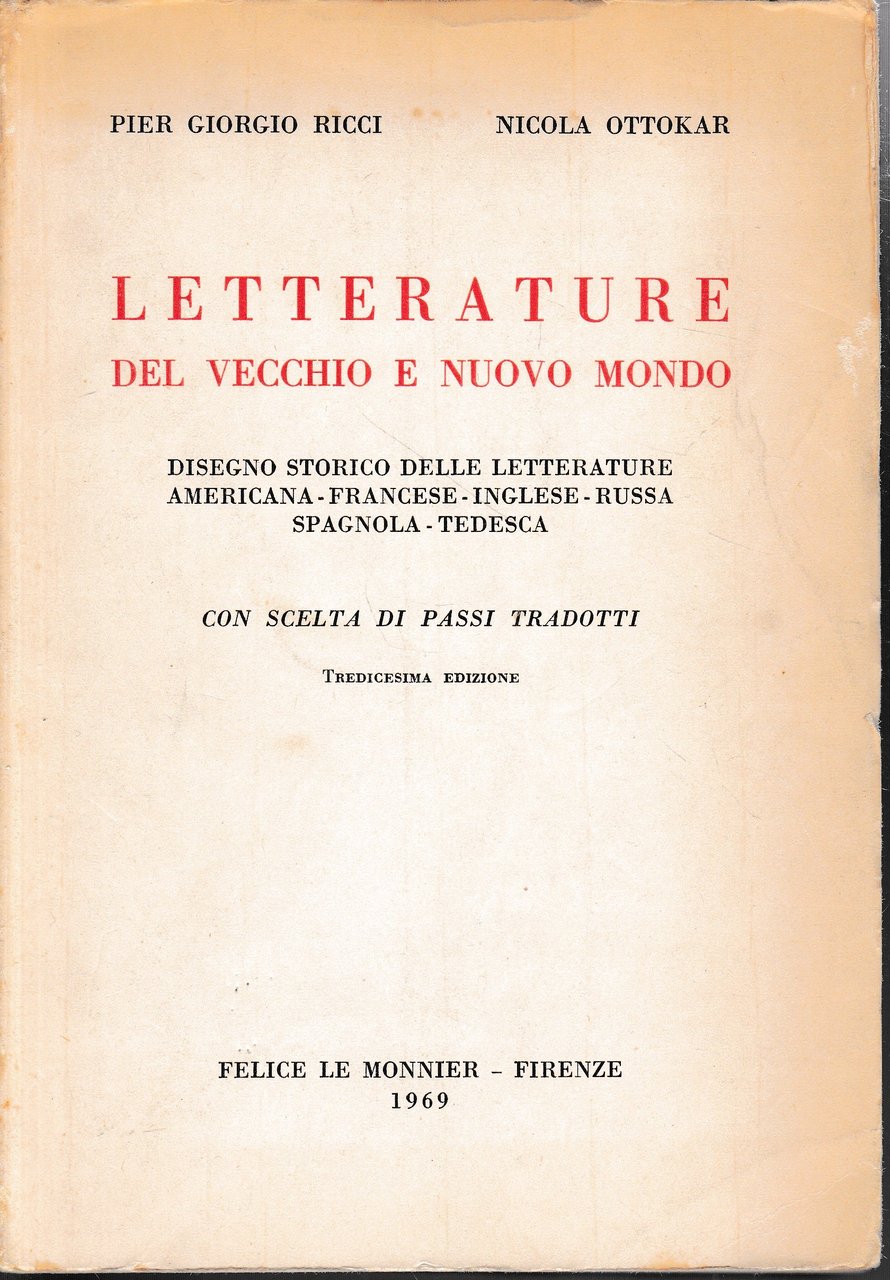 Letterature del vecchio e nuovo mondo. Disegno storico delle letterature Americana-Francese-Inglese-Russa-Spagnola-Tedesca | Libri antichi e moderni | Pier Giorgio Ricci e Nicola Ottokar, ,Pier Giorgio Ricci e Nicola Ottokar