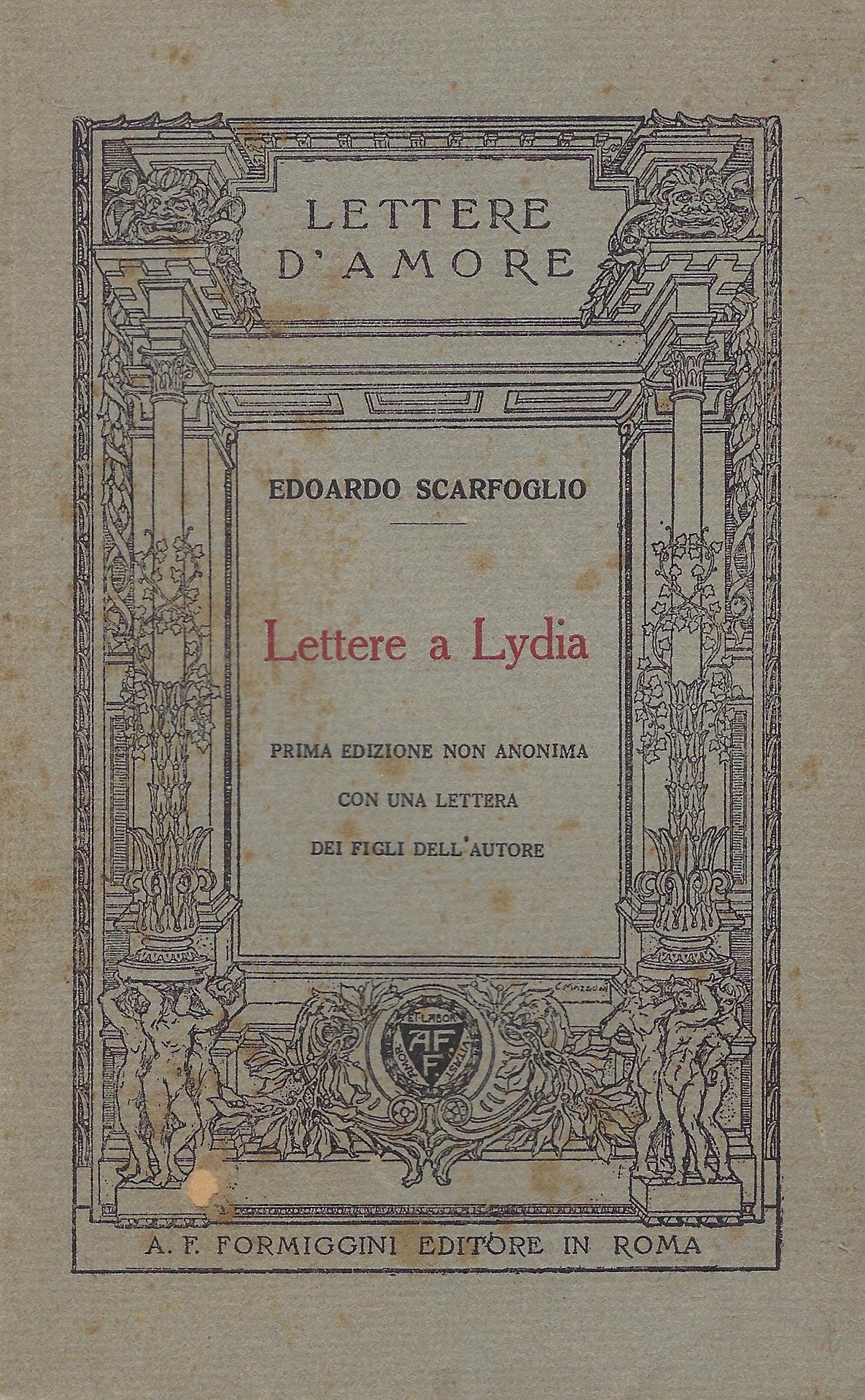 Formiggini, 1926. Collana Lettere d'amore, 101 pp. brossura Ottimo (Fine) segni del tempo, fioriture soprattutto su copertina e tagli, piccolo foro sul piatto anteriore come da foto, pagine in ottimo stato.