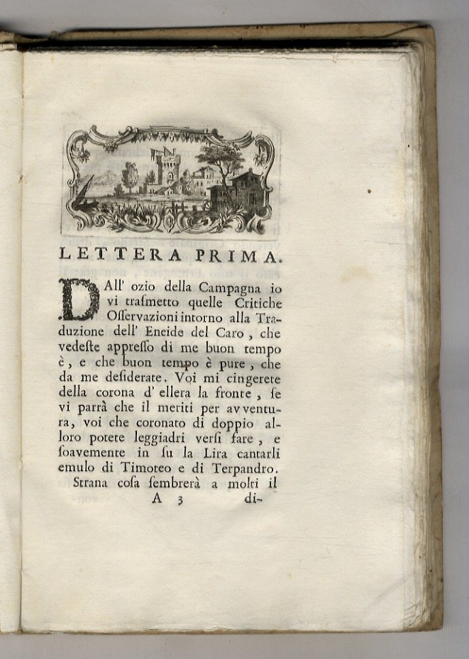 Venezia, Albrizzi, 1745, in-8, cartoncino coevo, titolo calligrafato sul dorso, cc. nn. 4, pp. 5-158. Con 3 finissime vignette incise in rame. Esemplare che inizia a pagina 5 (segnatura A3) come quello della Biblioteca Nazionale Centrale di Firenze. (Lancetti, p. 218 - Melzi, II, p. 355 - Laterza, I, p. 81-82. Nessuno con la collazione). Ottime condizioni.