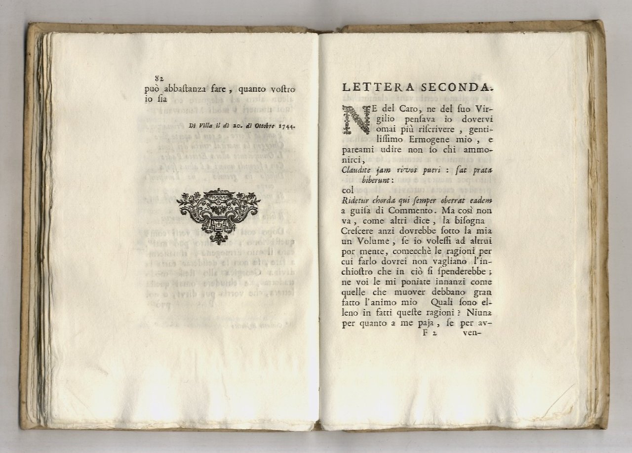 Lettere di Polianzio ad Ermogene. Intorno alla Traduzione dell'Eneide del Caro. Seconda Edizione accresciuta. (Stesso anno della prima). | Libri antichi e moderni | (Algarotti Francesco).
