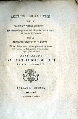 Lettere Ligustiche ossia osservazioni critiche sullo Stato Geografico della Liguria fino ai tempi di Ottone il Grande, con le Memorie Storiche di Caffa, ed altri luoghi della Crimea posseduti un tempo da' Genovesi, e Spiegazione de' Monumenti Liguri quivi esistenti. | Libri antichi e moderni | Oderico Gasparo Luigi