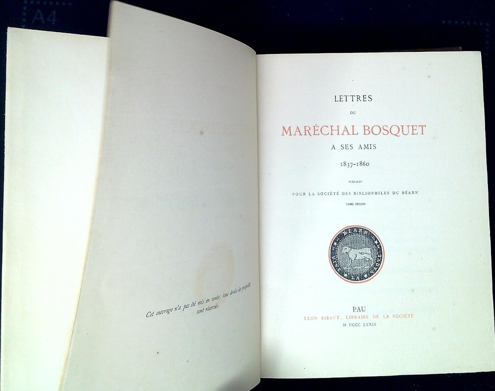 Bosquet, Pierre Francois Joseph Lettres Du Marechal Bosquet a Ses Amis, 1837-1860. Pau, Léon Ribaut 1879, Due volumi in ottavo, IV-III; 173 p. e V; 218 p. (61940)
