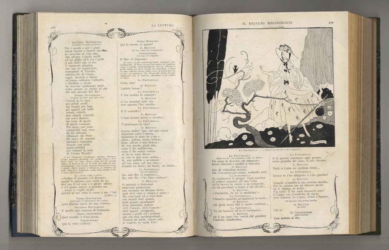 Milano, Corriere della Sera, 1920, fascicoli 12 rilegati in un volume, in-8, legatura coeva in mezza tela, titolo e data dell'annata in oro al dorso, pp. 912, [2], in paginazione continua fra i fascicoli. Con centinaia di illustrazioni n.t. Segnaliamo diverse illustrazioni in nero di Umberto Brunelleschi e il racconto "L'usignolo meccanico", di Luigi Antonelli, con due illustrazioni di Alberto Martini. Le copertine delle brossure editoriali non sono state conservate.