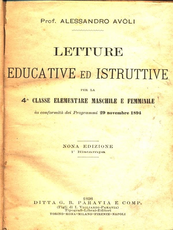 Letture educative ed istruttive per la 4 classe elementare | Libri antichi e moderni | Avoli, Alessandro