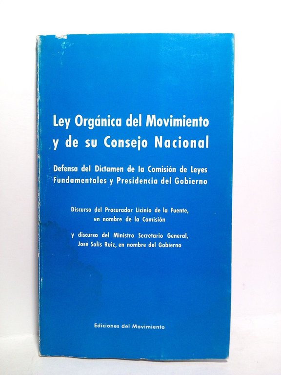 Ley Orgánica del Movimiento y de su Consejo Nacional; Defensa del Dictamen de la Comisión de Leyes Fundamentales y Presidencia del Gobierno; Discurso del Procurador Licinio de la Fuente, en nombre de la Comisión; Discurso del Ministro Secretario General del Movimiento, José Solís Ruiz, en nombre del Gobierno | Libri antichi e moderni | Varios