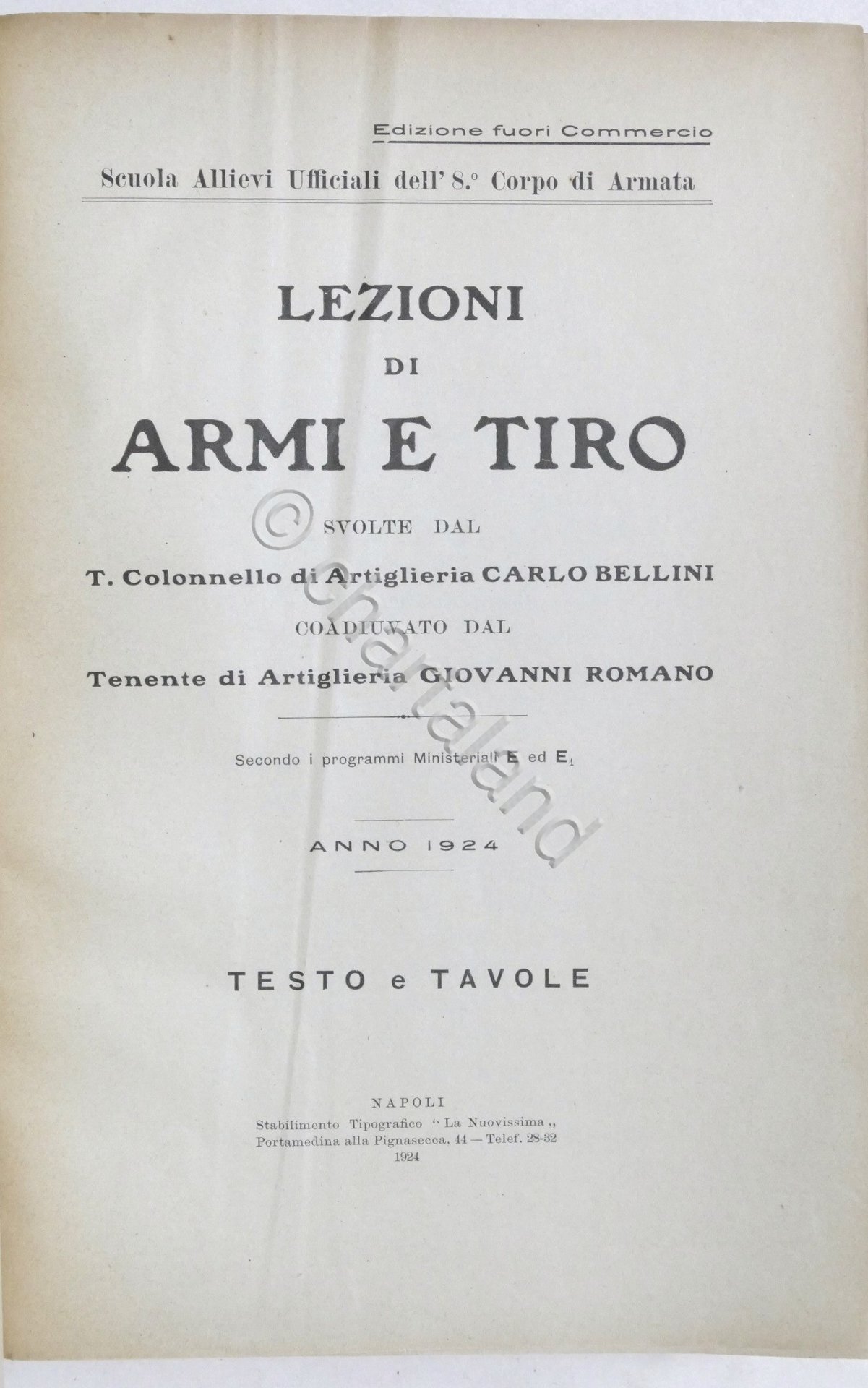 Lezioni di armi e tiro svolte dal T. Colonnello di Artiglieria Carlo Bellini coadiuvato dal Tenente di Artiglieria Giovanni Romano - ed. 1924