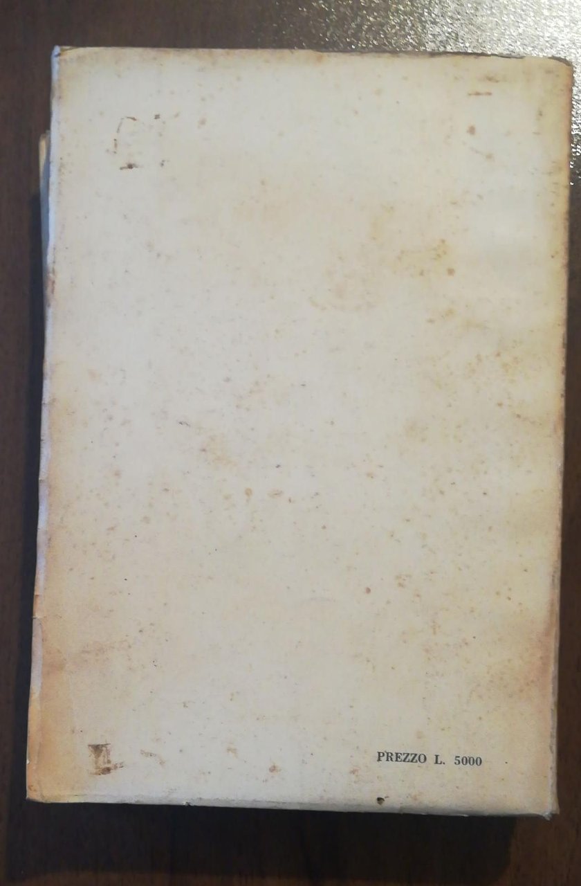 Copertina: cartonata, sporca lievemente, ingiallita, con gore. Legatura: a filo refe. Dorso: nervato, sporco, scolorito. Taglio: ingiallito, irregolare in modo lieve. Frontespizio: con gore, ingiallito. Pagine testo: ingiallite, brunite ai margini, con gore Buono (Good) .