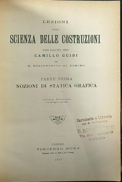 Lezioni sulla scienza delle costruzioni parte prima e seconda | Libri antichi e moderni | Guidi, Camillo