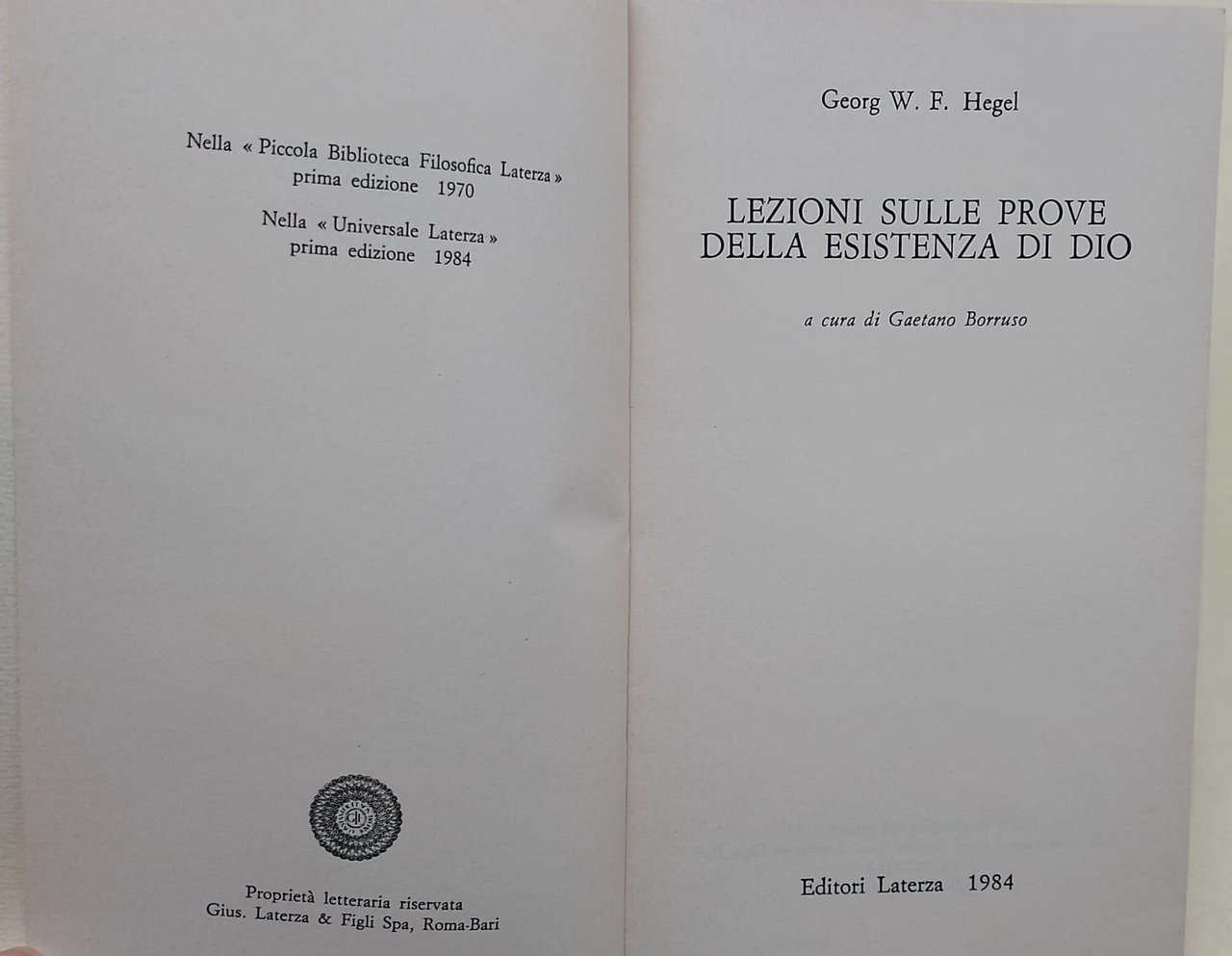Lezioni sulle prove dell'esistenza di Dio | Libri antichi e moderni | Hegel, G.W.F.