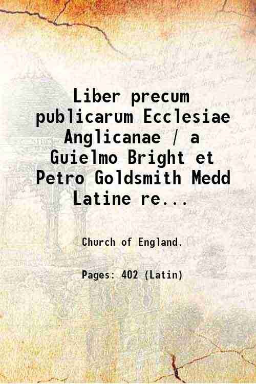 Liber precum publicarum Ecclesiae Anglicanae / a Guielmo Bright et Petro Goldsmith Medd Latine redditus. 1869