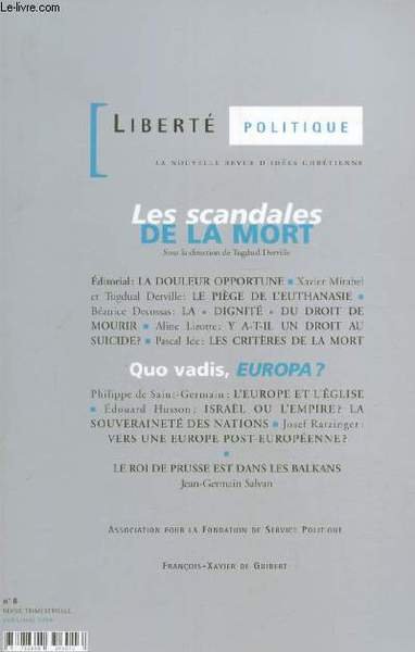 Liberté politique la nouvelle revue d'idées chrétienne ,Les scandales de la mort N°8 avril/mai 1999 | Libri antichi e moderni | Jubert Francis