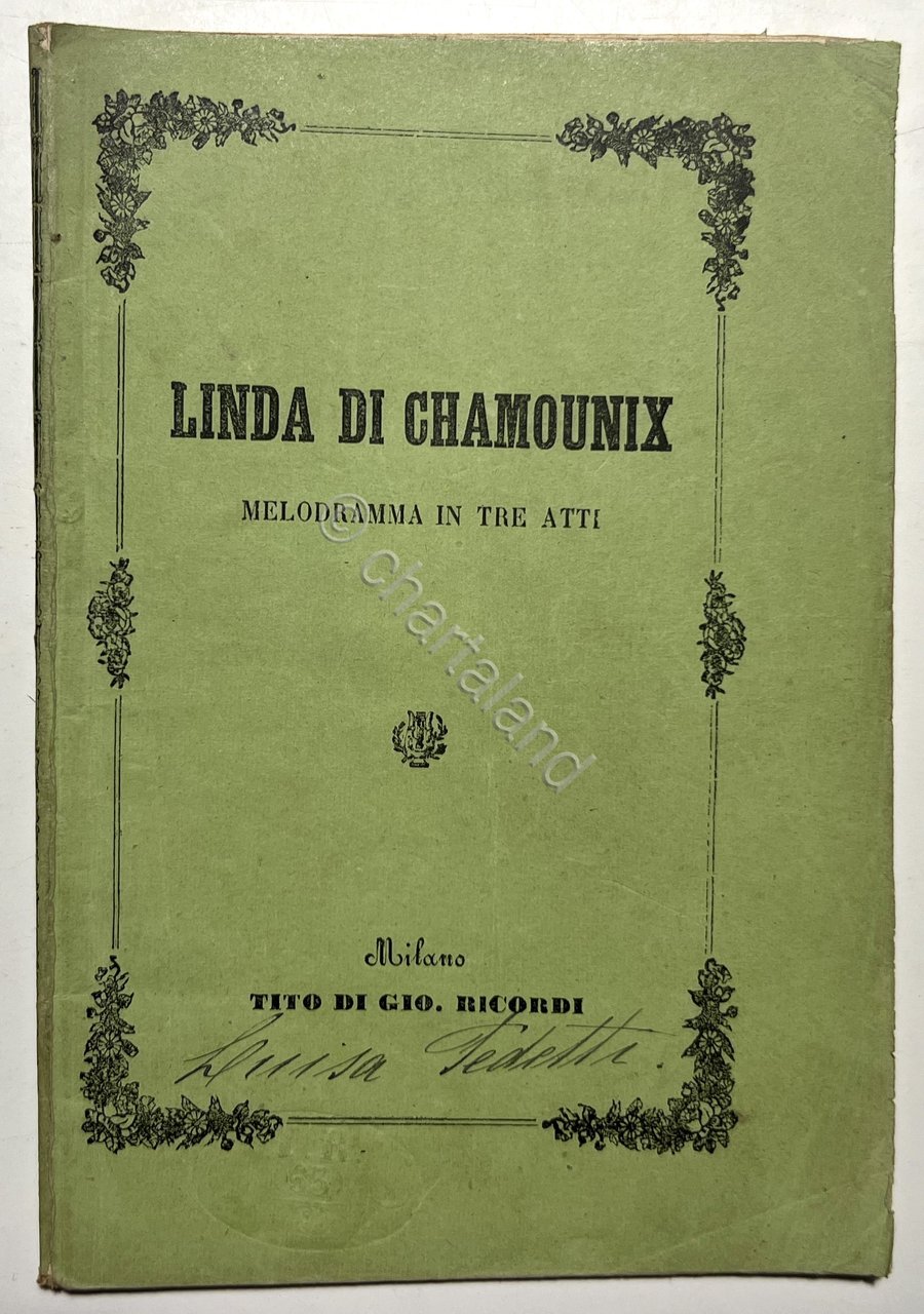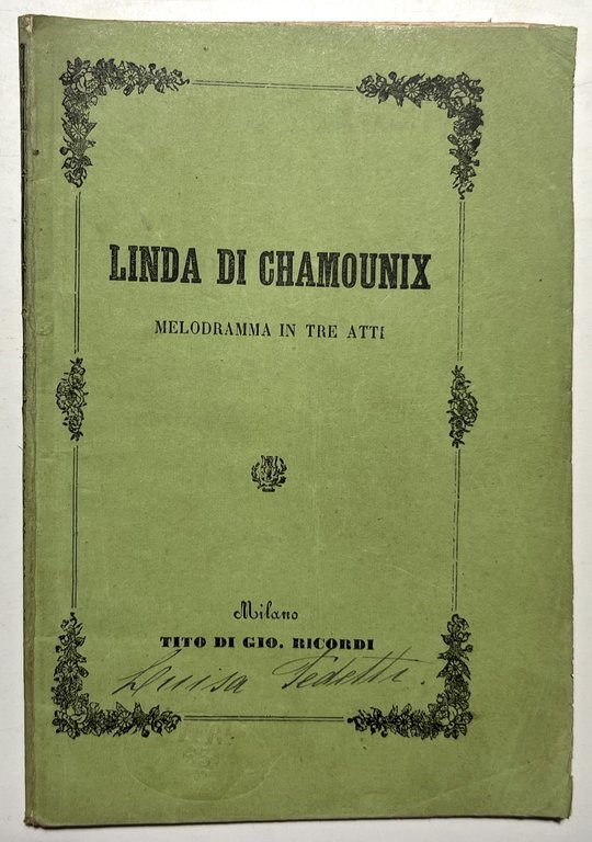 Libretto Opera - Linda di Chamounix: Melodramma in Tre Atti di G. Donizetti 1877 | Libri antichi e moderni |