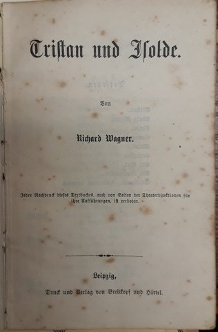 [Libretto] Tristan et Isolde von Richard Wagner. Jeder Nachdruck dieses Textbuches, auch von Seiten der Theaterdirektionen für ihre Aufführungen, ist verboten